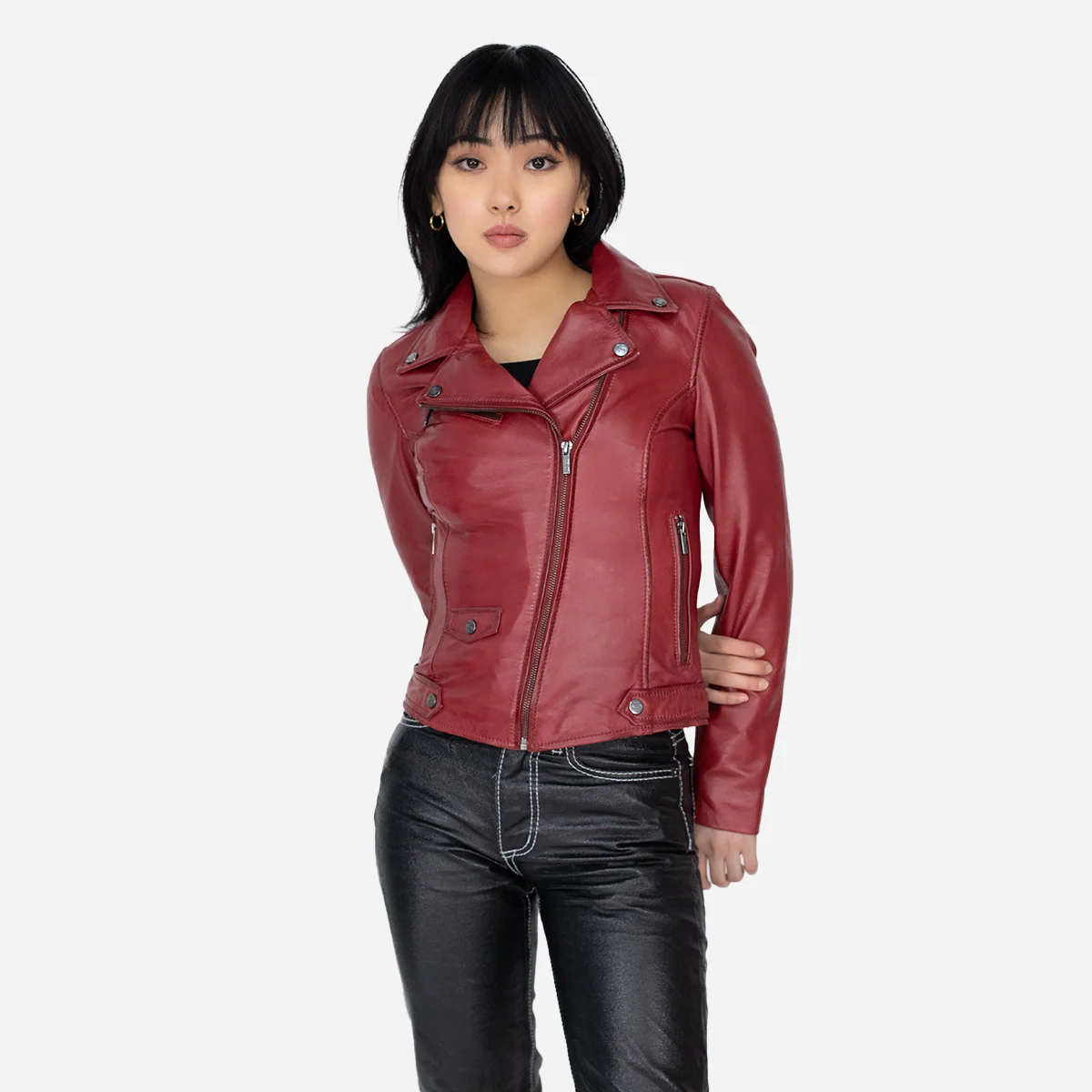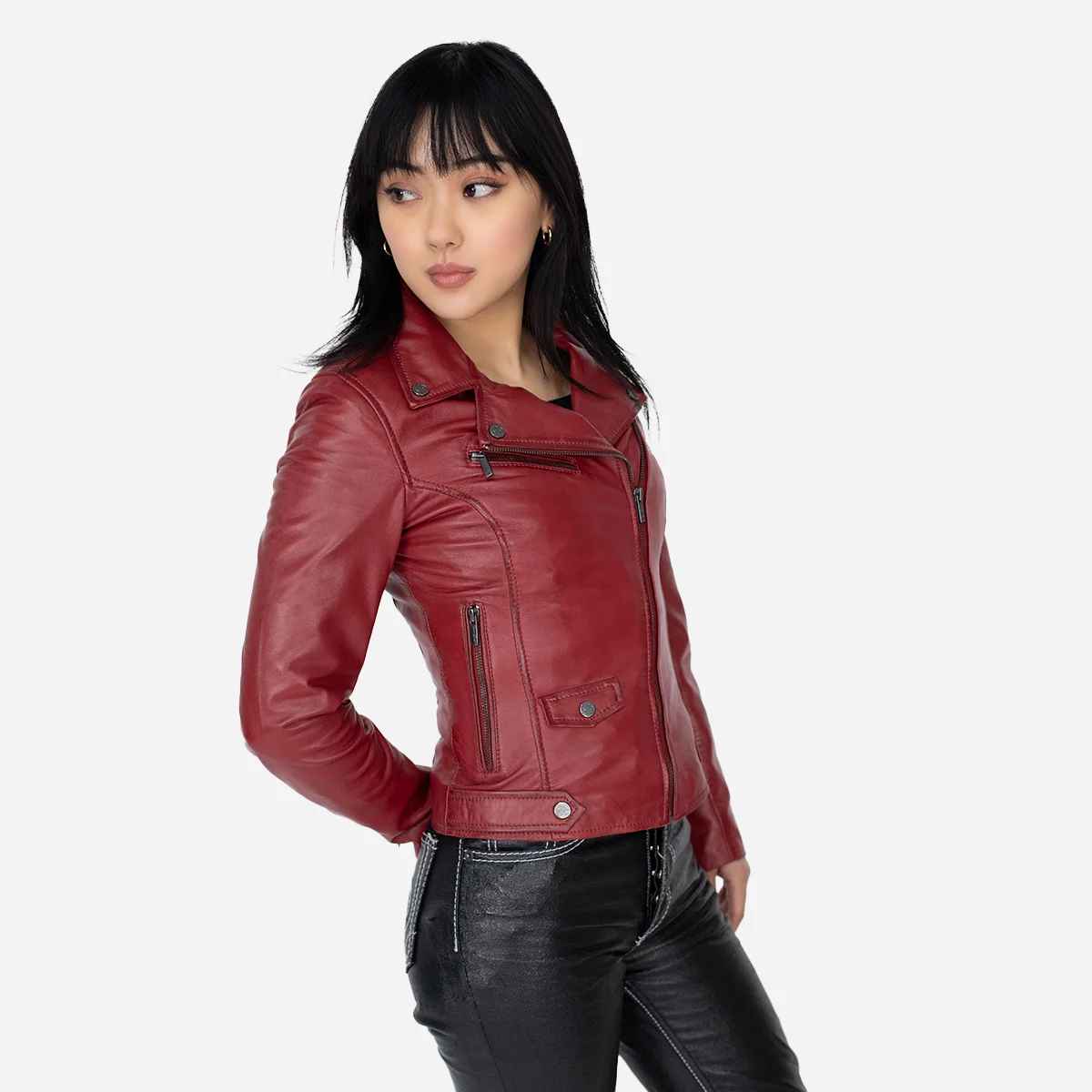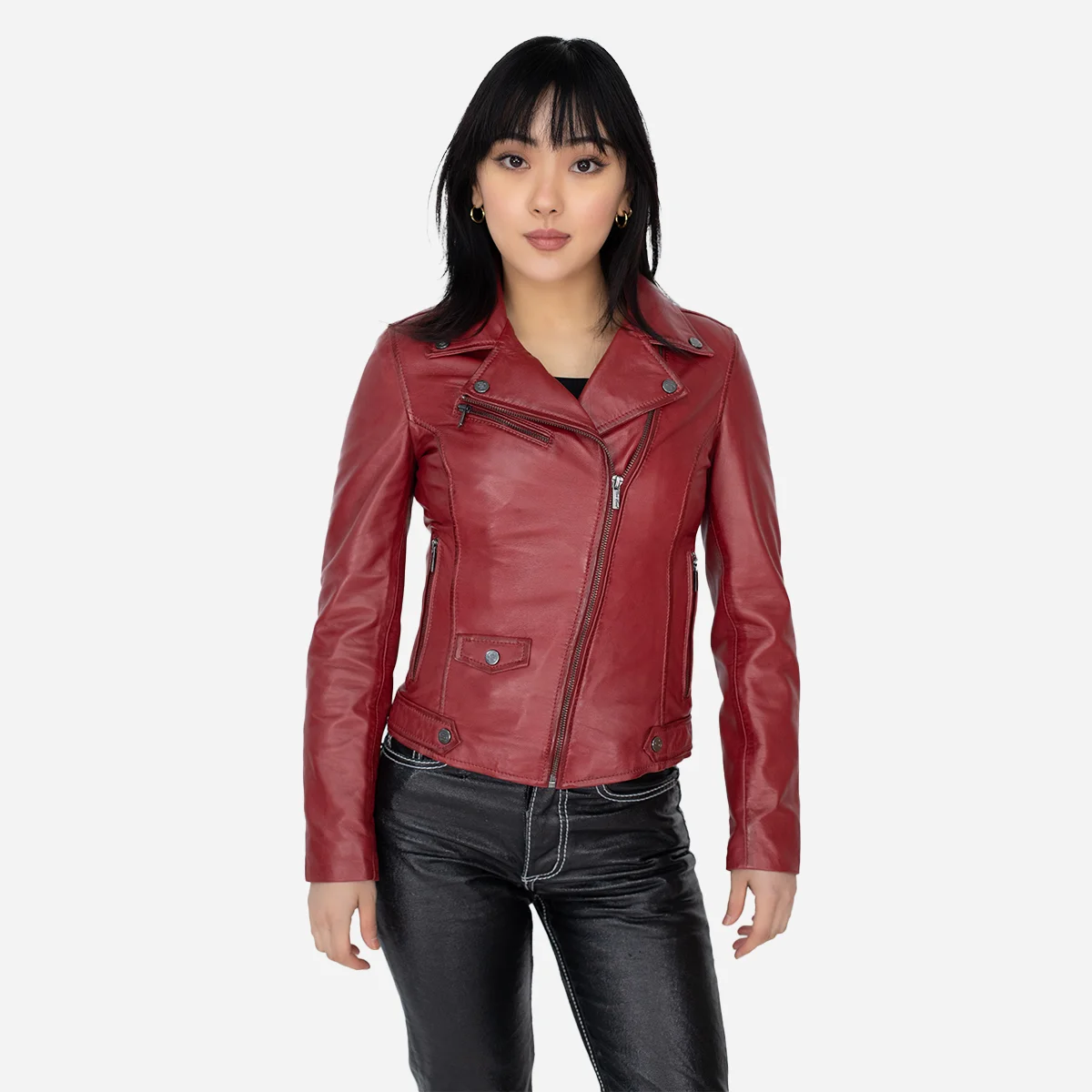 Experience the Ladies leather biker jacket red classic Perfecto, where timeless fashion meets unparalleled comfort and practicality. With its unique asymmetric closure and multiple pockets for organization, this jacket adds a twist to your look. Soft cotton lining ensures all-day comfort, and the full front zip allows easy style adjustments. The slim fit enhances your silhouette for a sophisticated appearance. Available in captivating colors and sizes, it’s more than just a jacket—it’s a statement of style, comfort, and functionality that leaves a lasting impression on your wardrobe. Make it yours today!