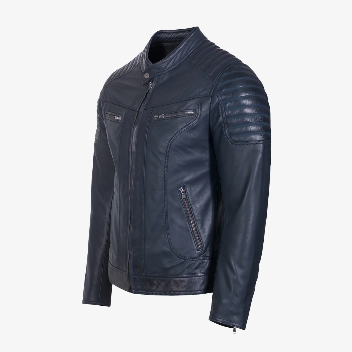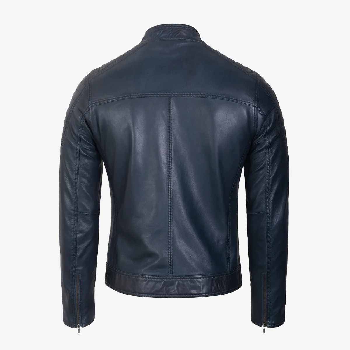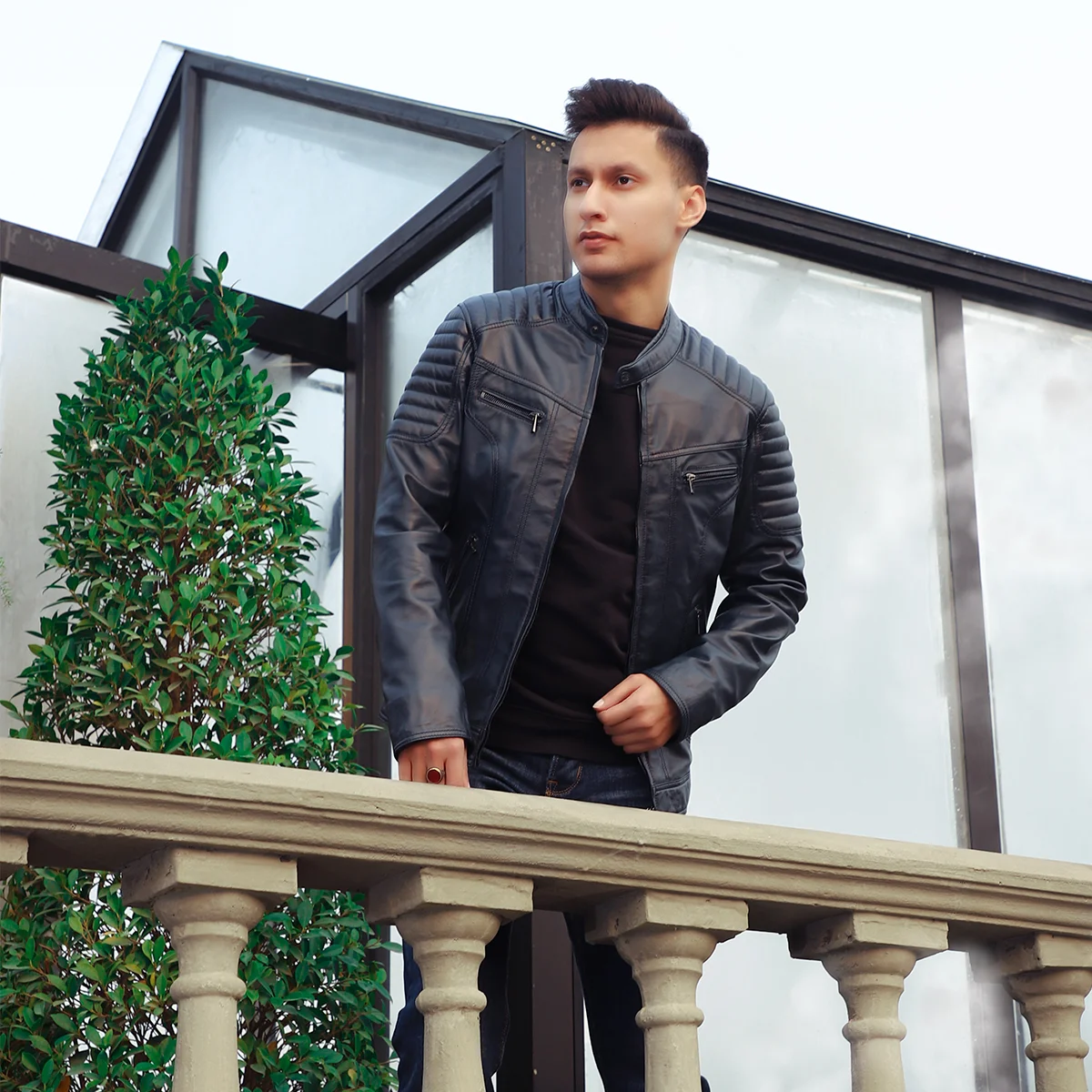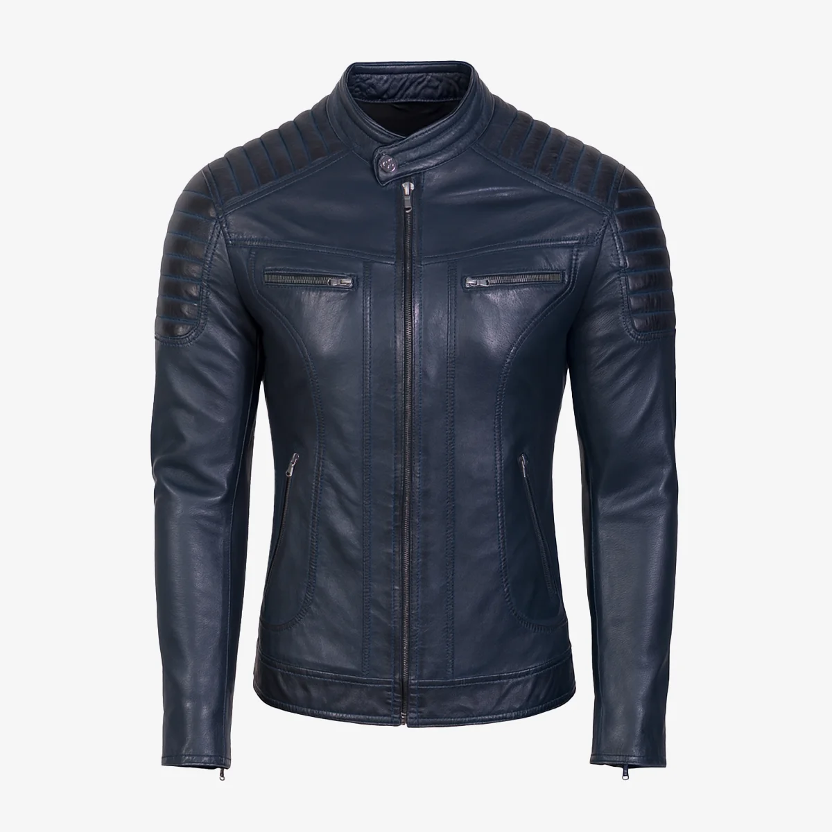 Discover the epitome of style and practicality with our Mens leather jacket blue Ryan, a top-selling masterpiece. Meticulously crafted, it features sleek zipper details, ribble shoulders, and a comfortable cotton lining. With different size ranges, we guarantee the perfect fit for every body type. Elevate your fashion game with this timeless classic that effortlessly marries form and function, making it a must-have addition to your wardrobe.
