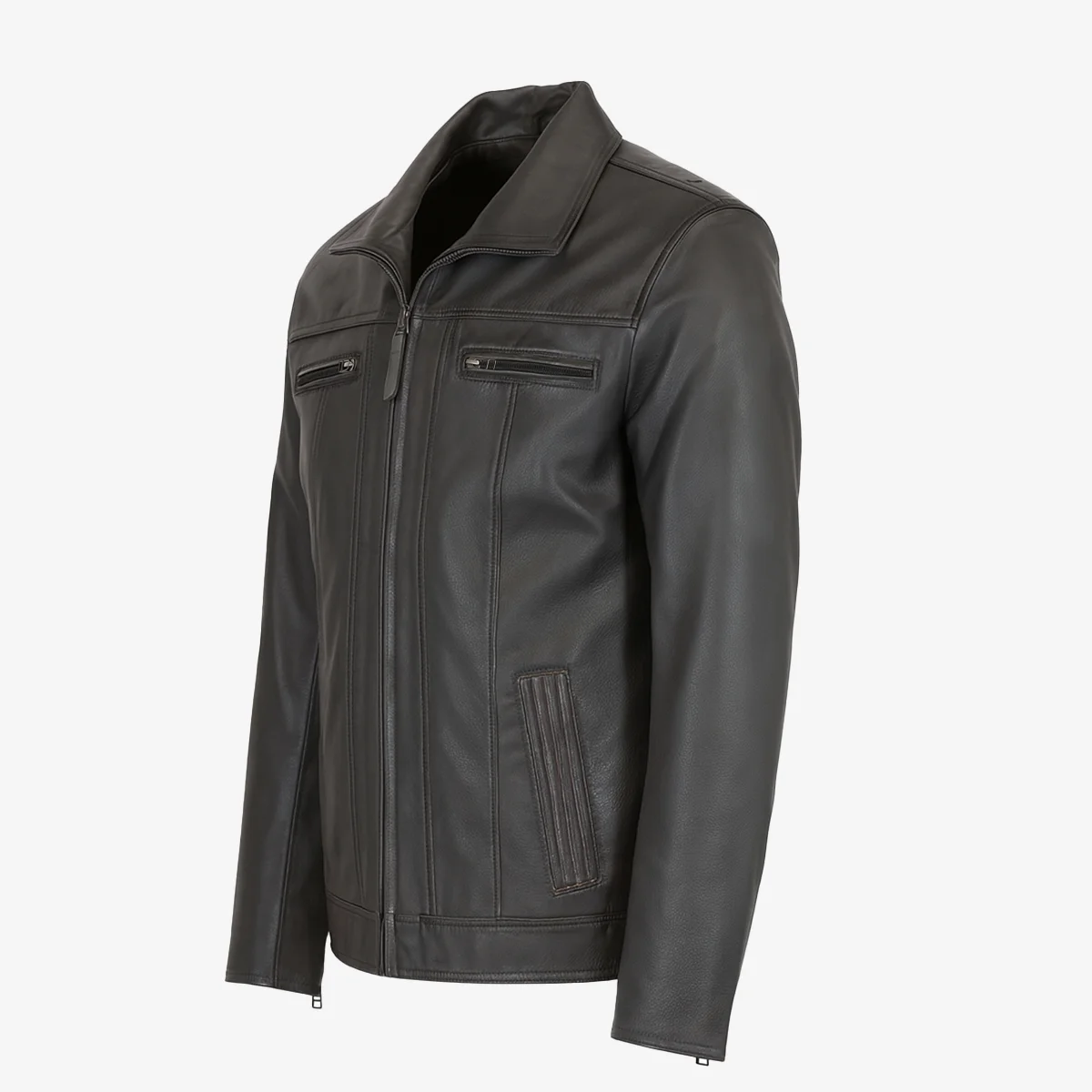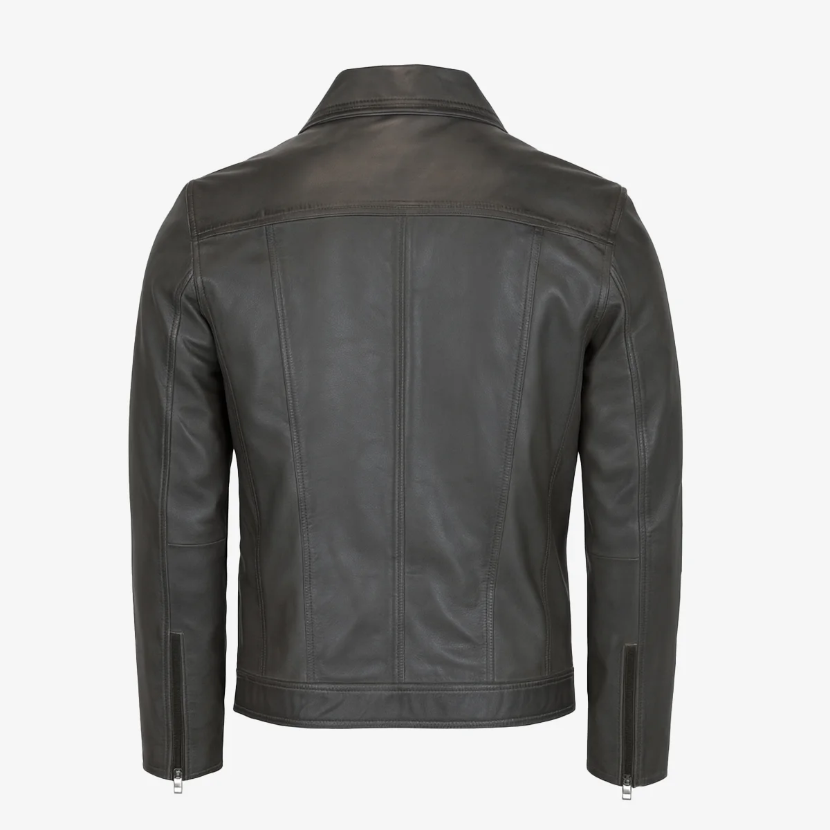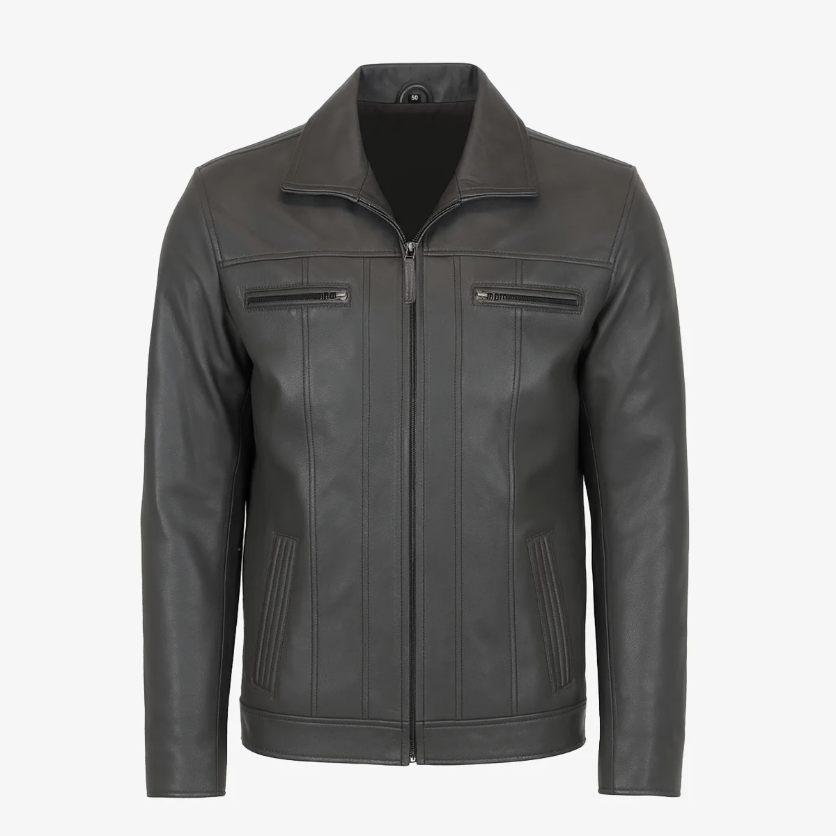 Mens leather jacket charcoal Da004 – a sartorial masterpiece that seamlessly melds timeless elegance with unmatched utility. Specifically crafted with precision and an astute attention to detail, this garment represents the zenith of sophistication. Here’s what distinguishes it: