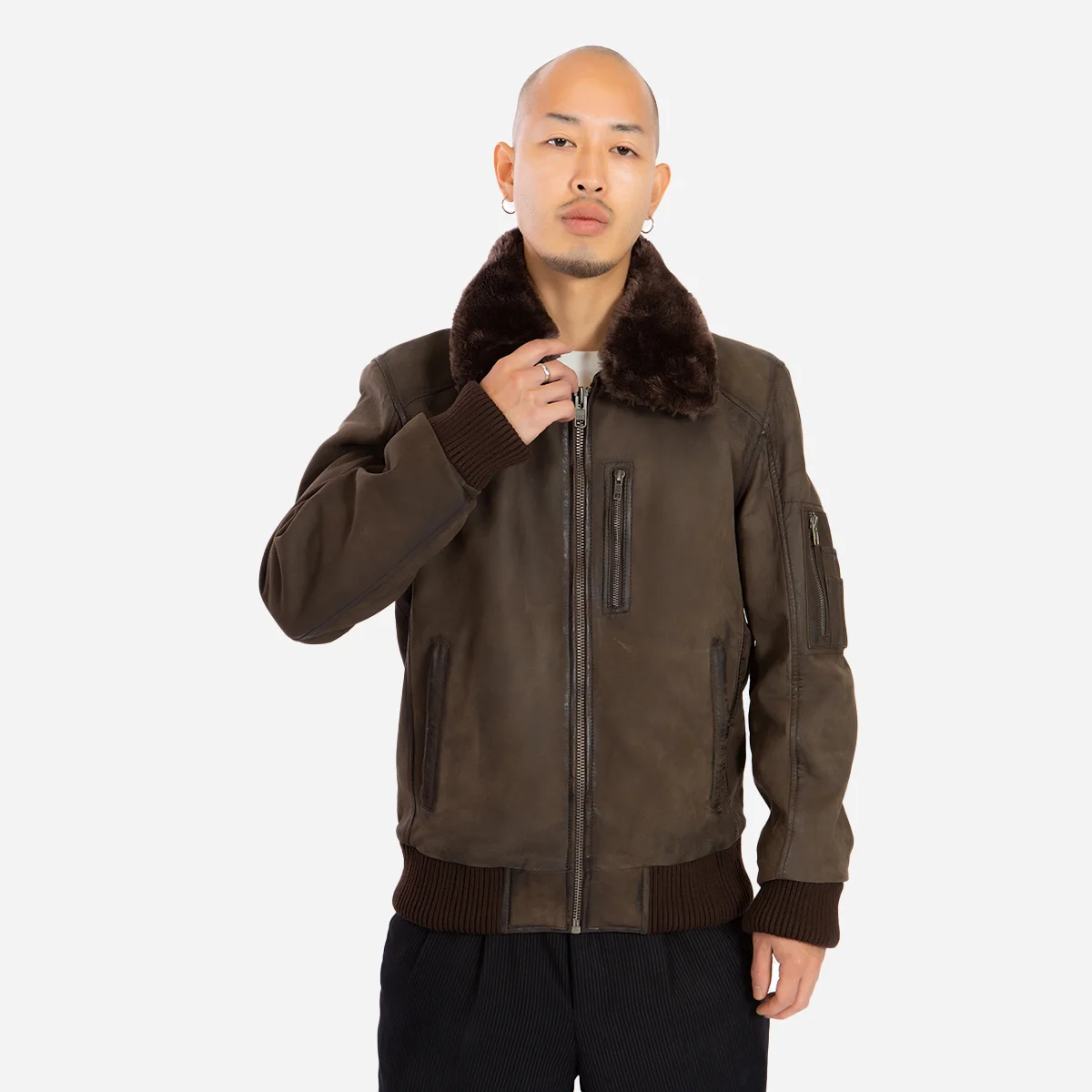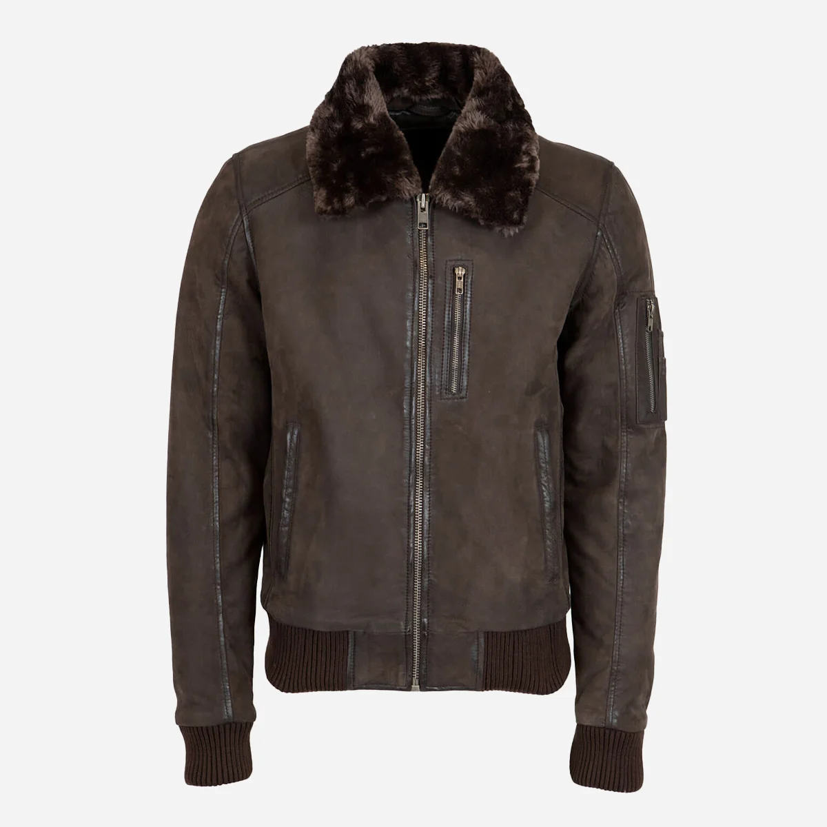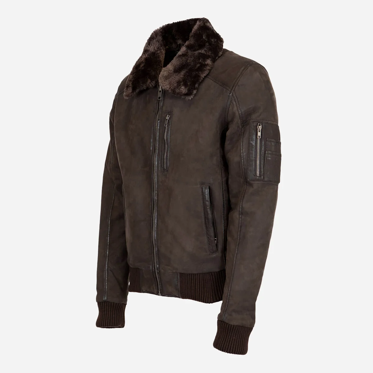 Elevate Your Style with our Mens Leather Lamb stonewash dark brown Bomber! Unleash a fusion of rugged allure and urban sophistication with leather bee-adorned pockets, a detachable fur collar, and cozy insulation. In a rich, dark brown hue, this jacket defines modern comfort and timeless style.