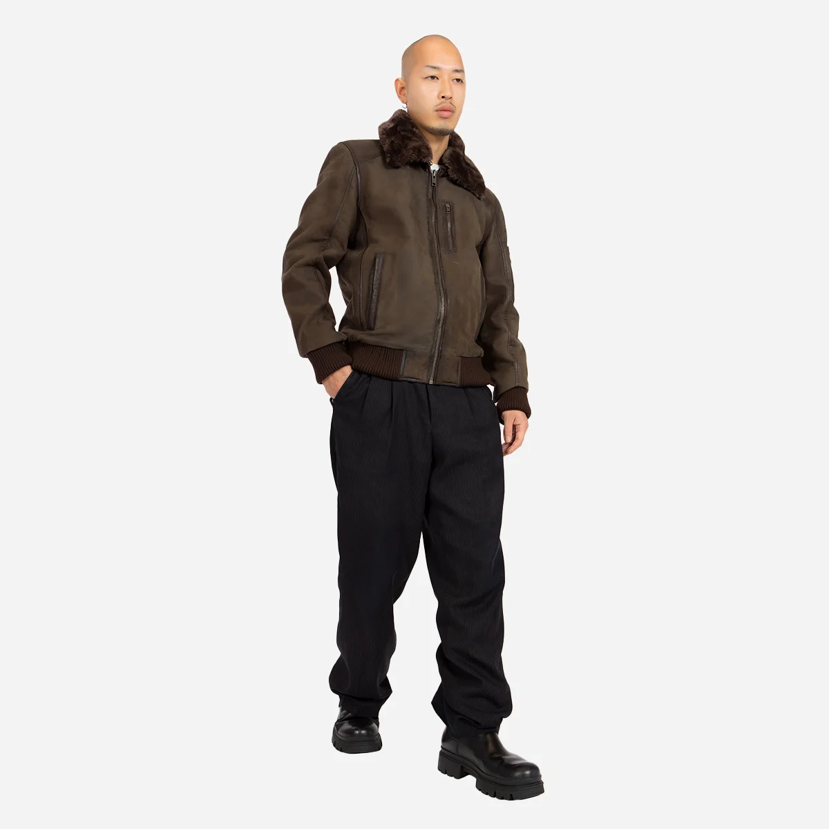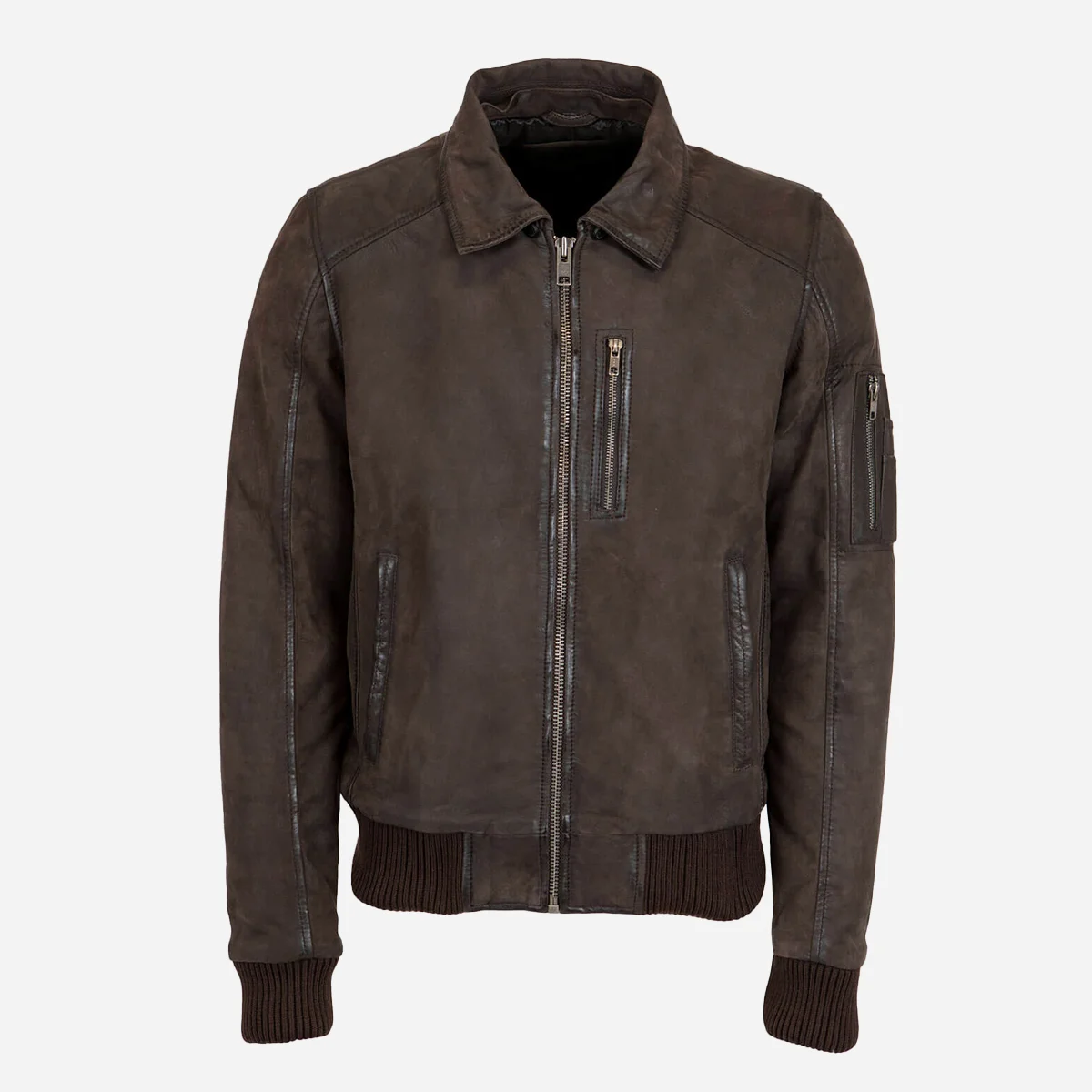Mens Leather Lamb stonewash dark brown Bomber