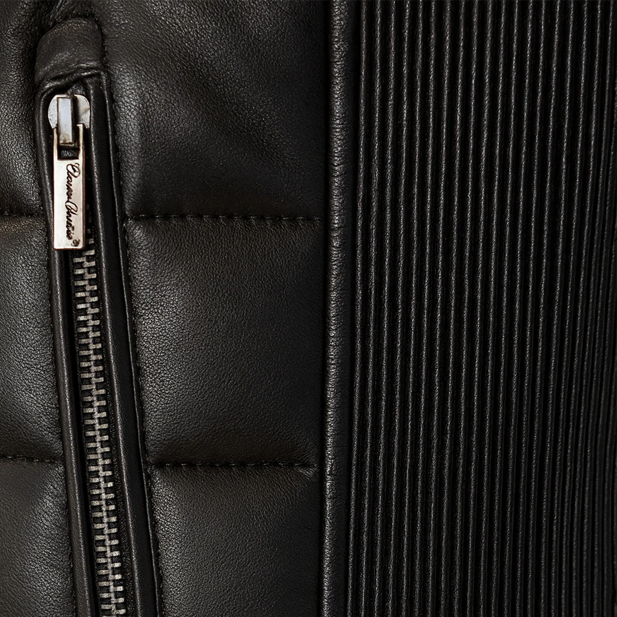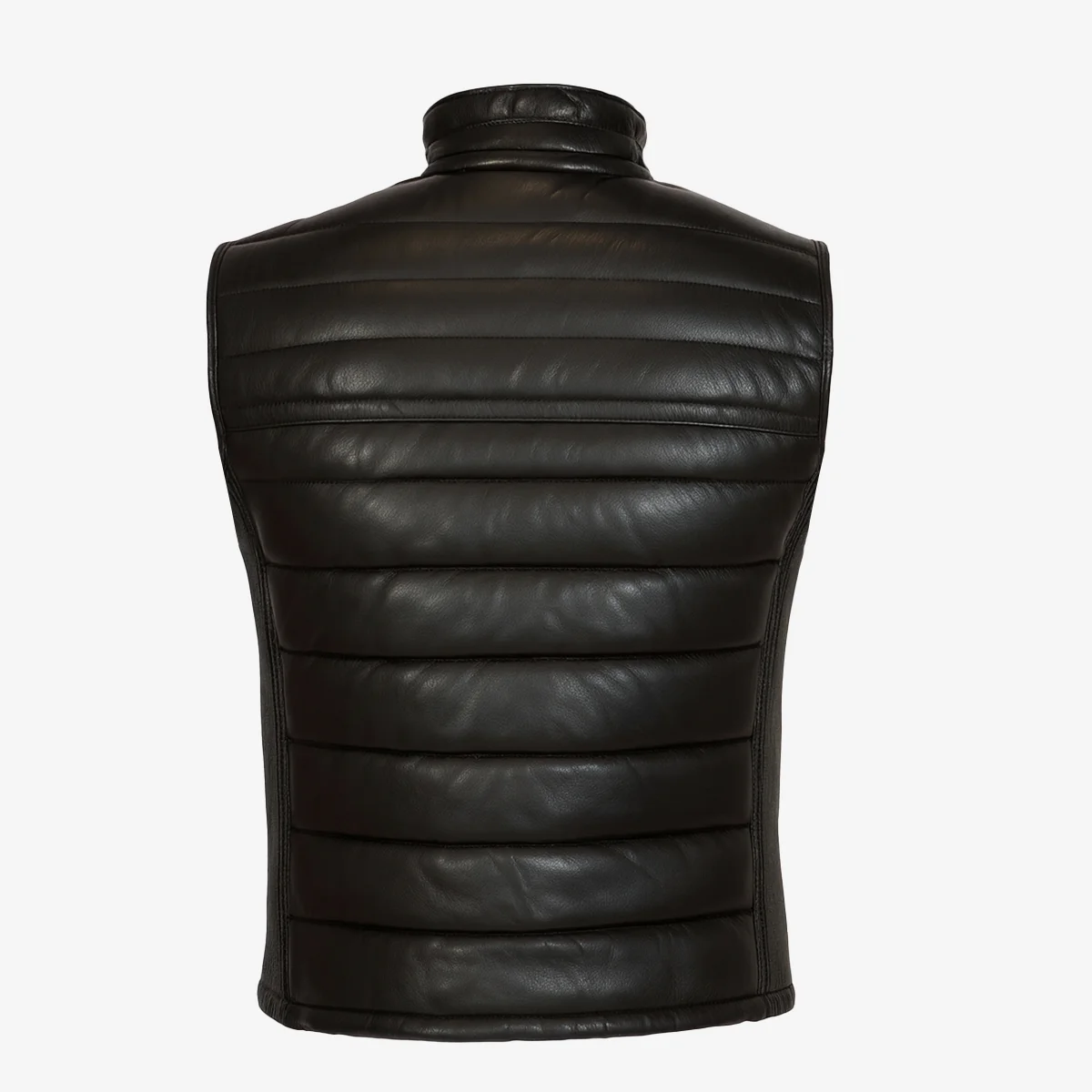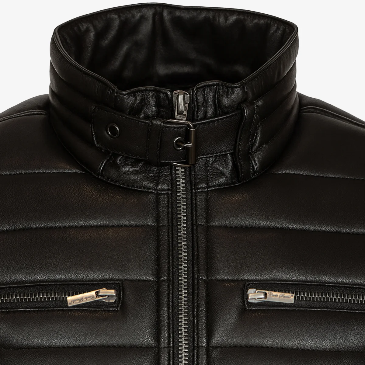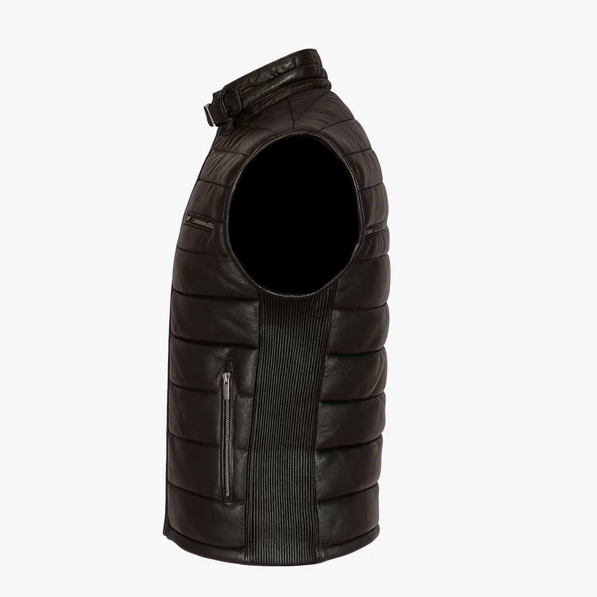 Experience the perfect blend of style and functionality with our Mens leather puffer black bodywarmer. This versatile garment features pockets for convenient storage, dynamic elasticity for comfort and mobility, and interior versatility for your essentials. With superior insulation and a collar buckle closure, it’s the ideal choice for chilly outings. Elevate your fashion game and make a statement with this unique piece, fusing urban sophistication and practical design. Upgrade your wardrobe today to redefine your style.