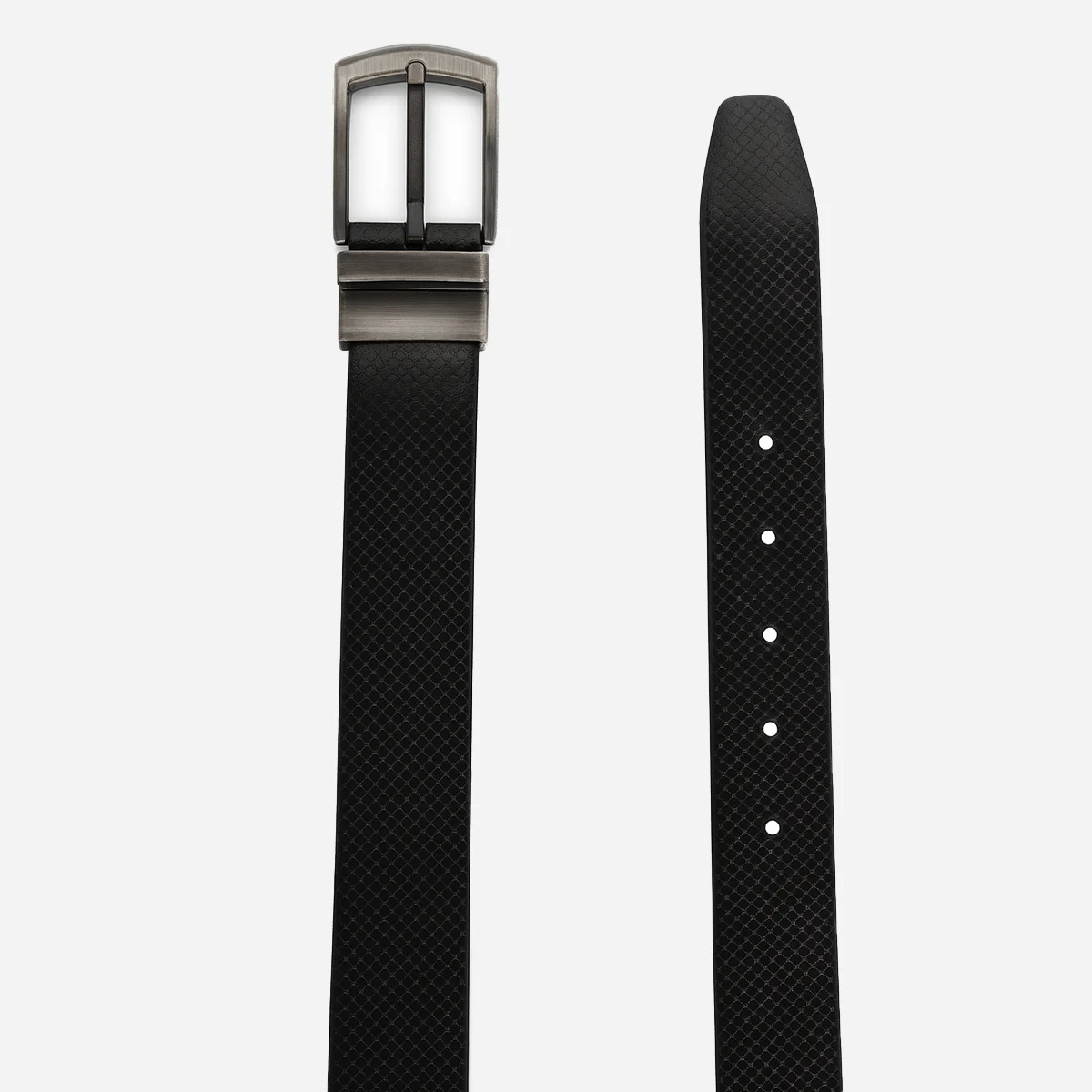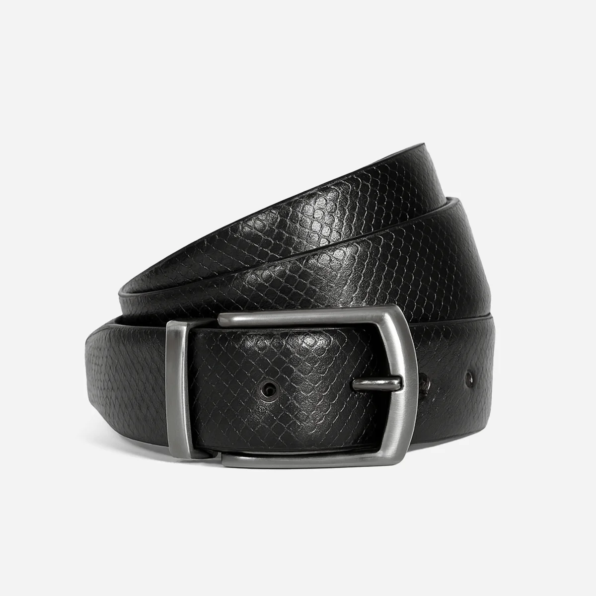 Stylish reversible leather belt of printed buffalo leather: two colors in one – black and brown, for maximum versatility.