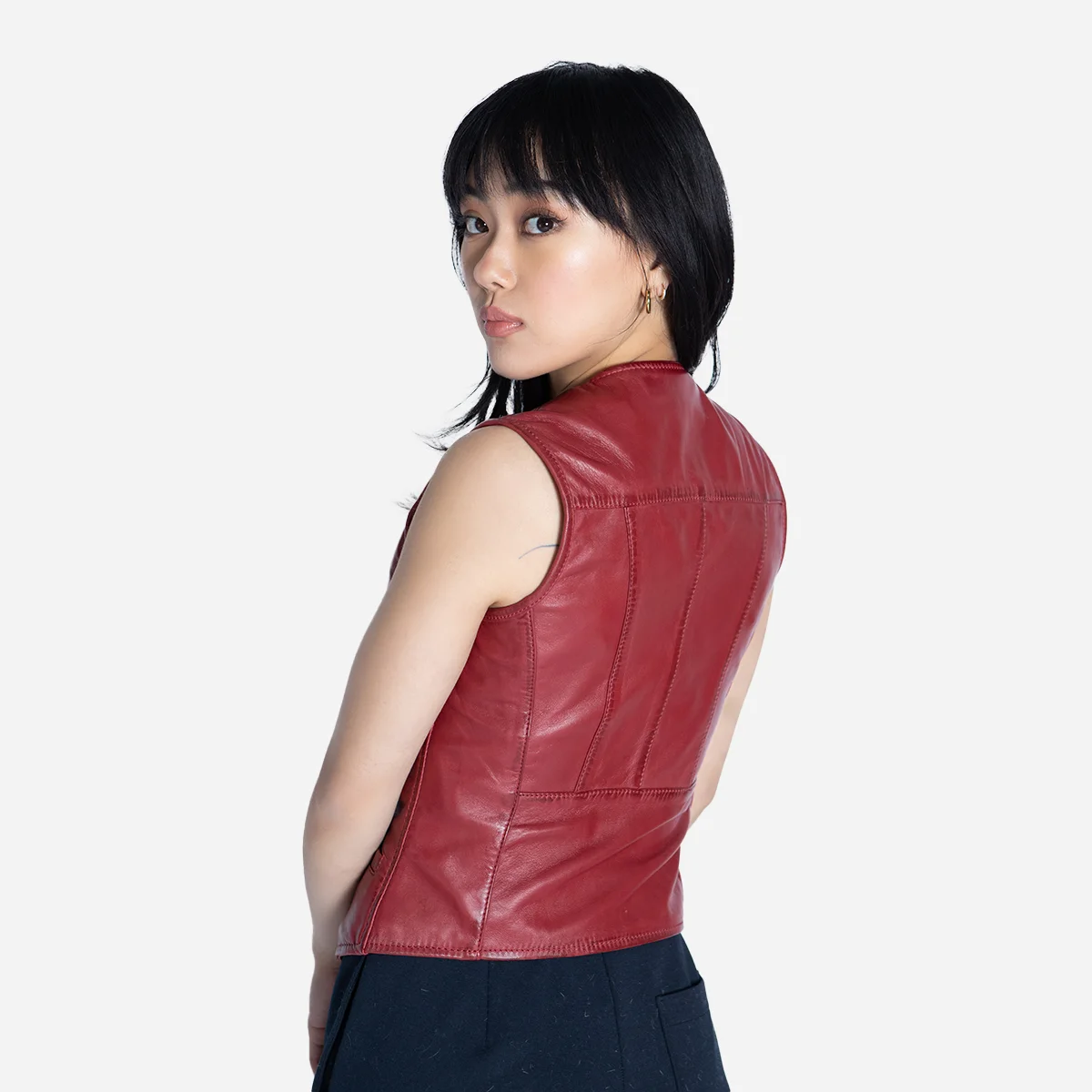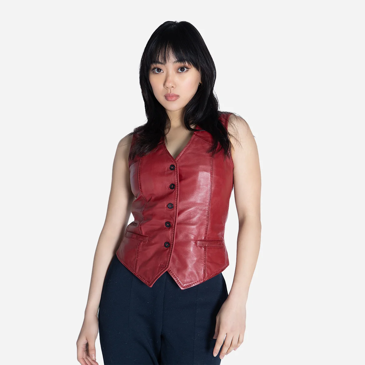 Women leather vest red waistcoat