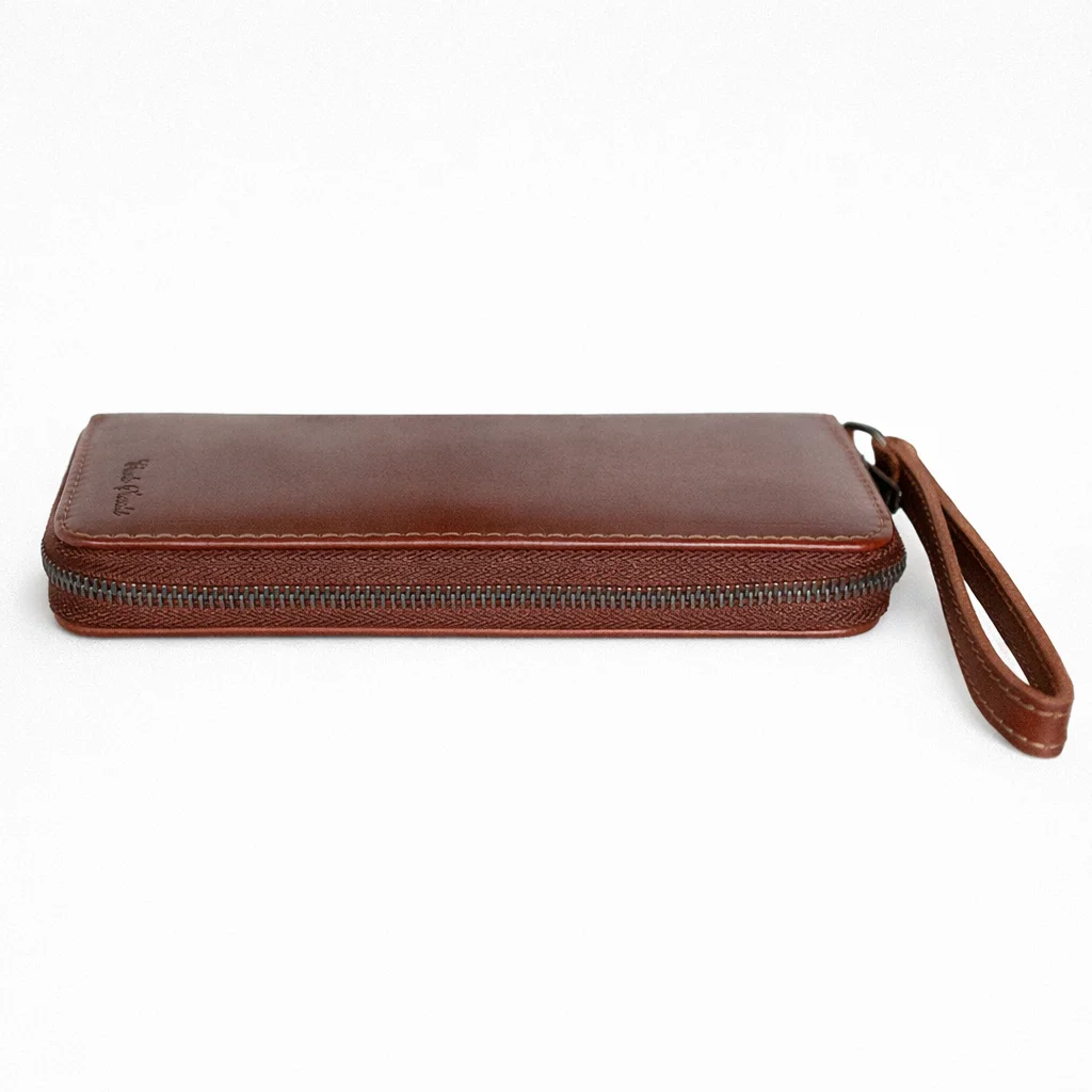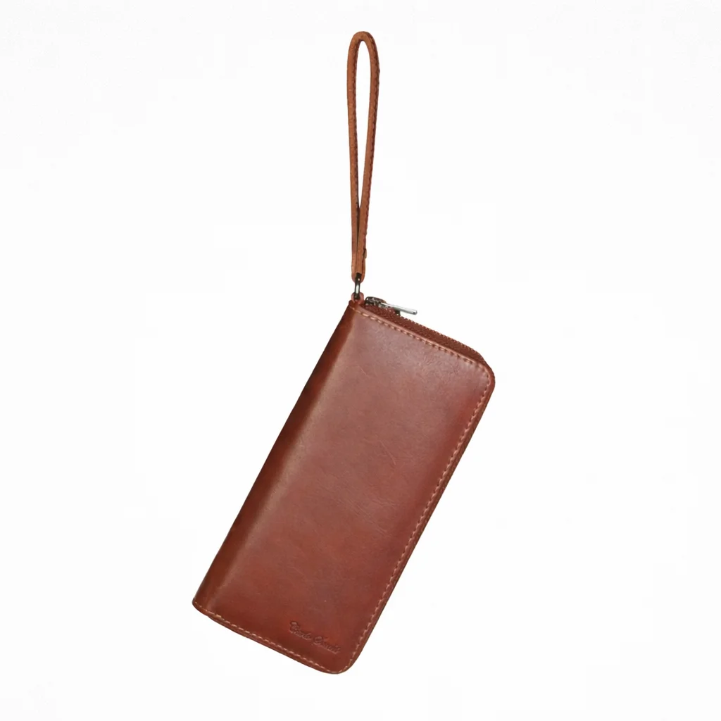 Womens leather clutch wallet with zip red