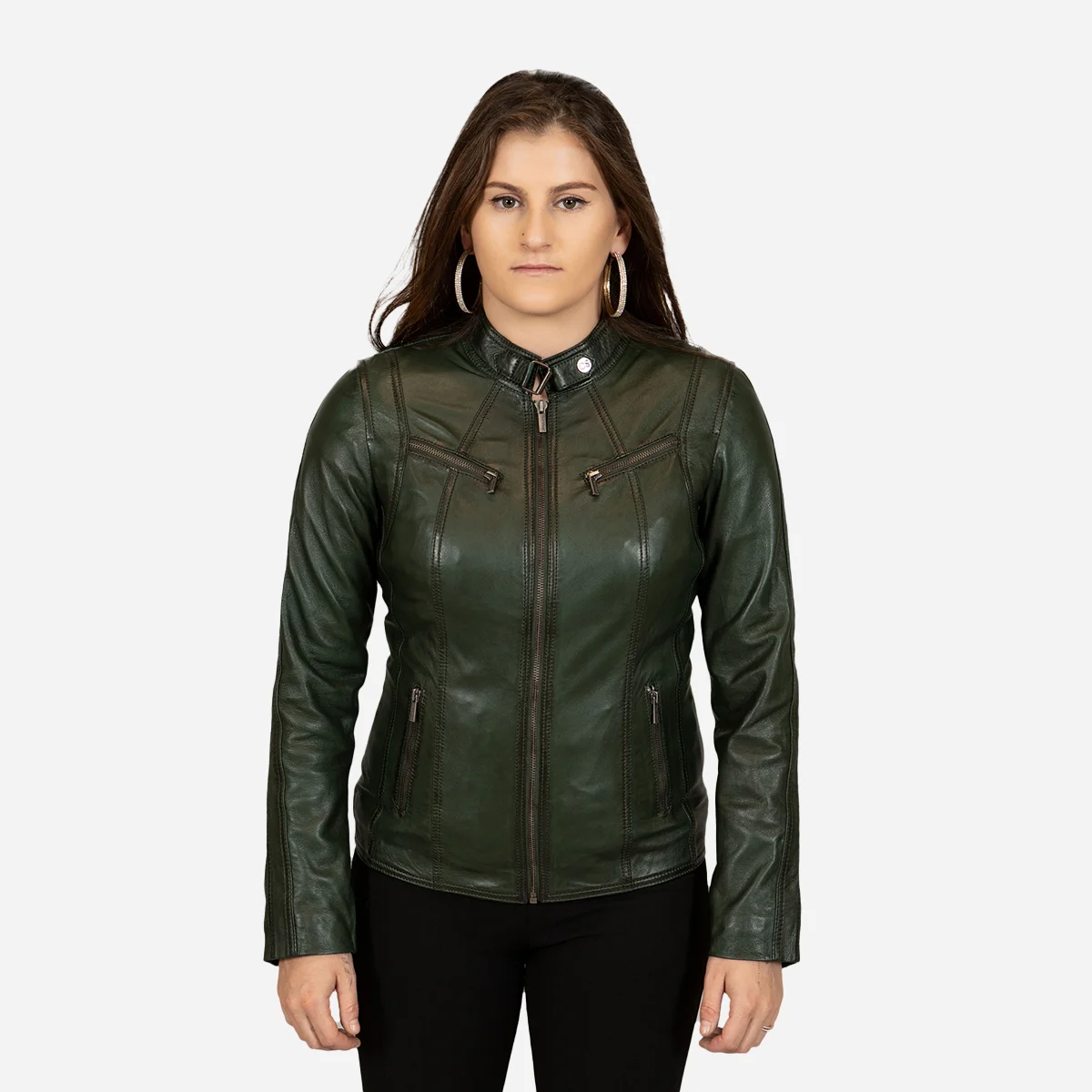 With our Womens leather jacket green 9902, you’ll radiate timeless sophistication wherever you go. Its outstanding design and versatility have made it one of our most popular products. Find the ideal hue to complement your style and make an everlasting impression.