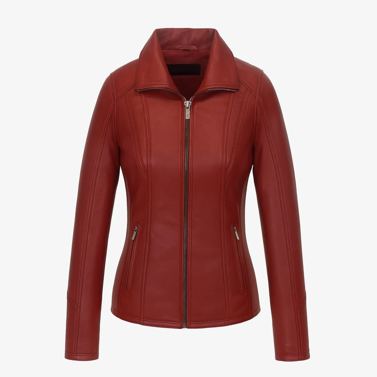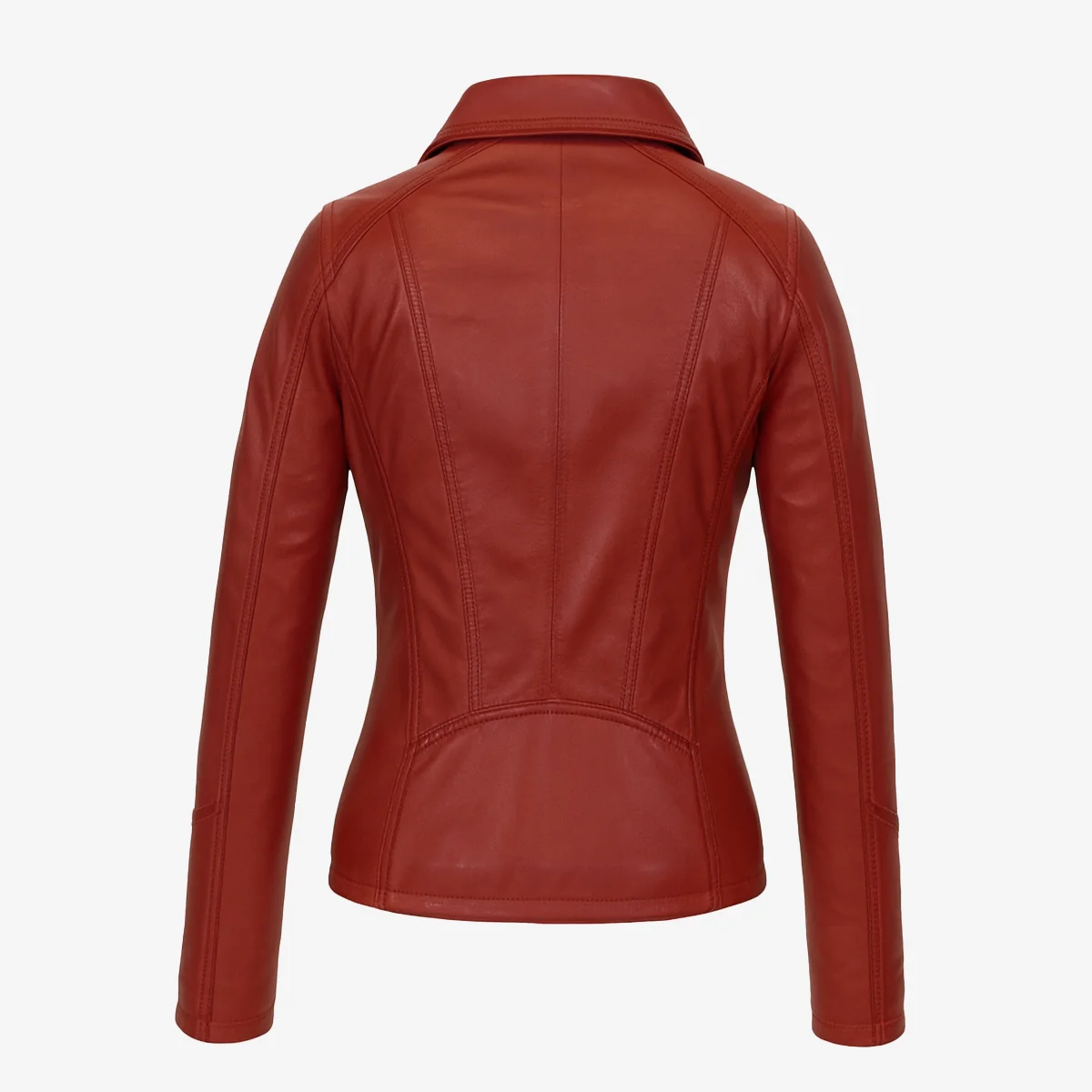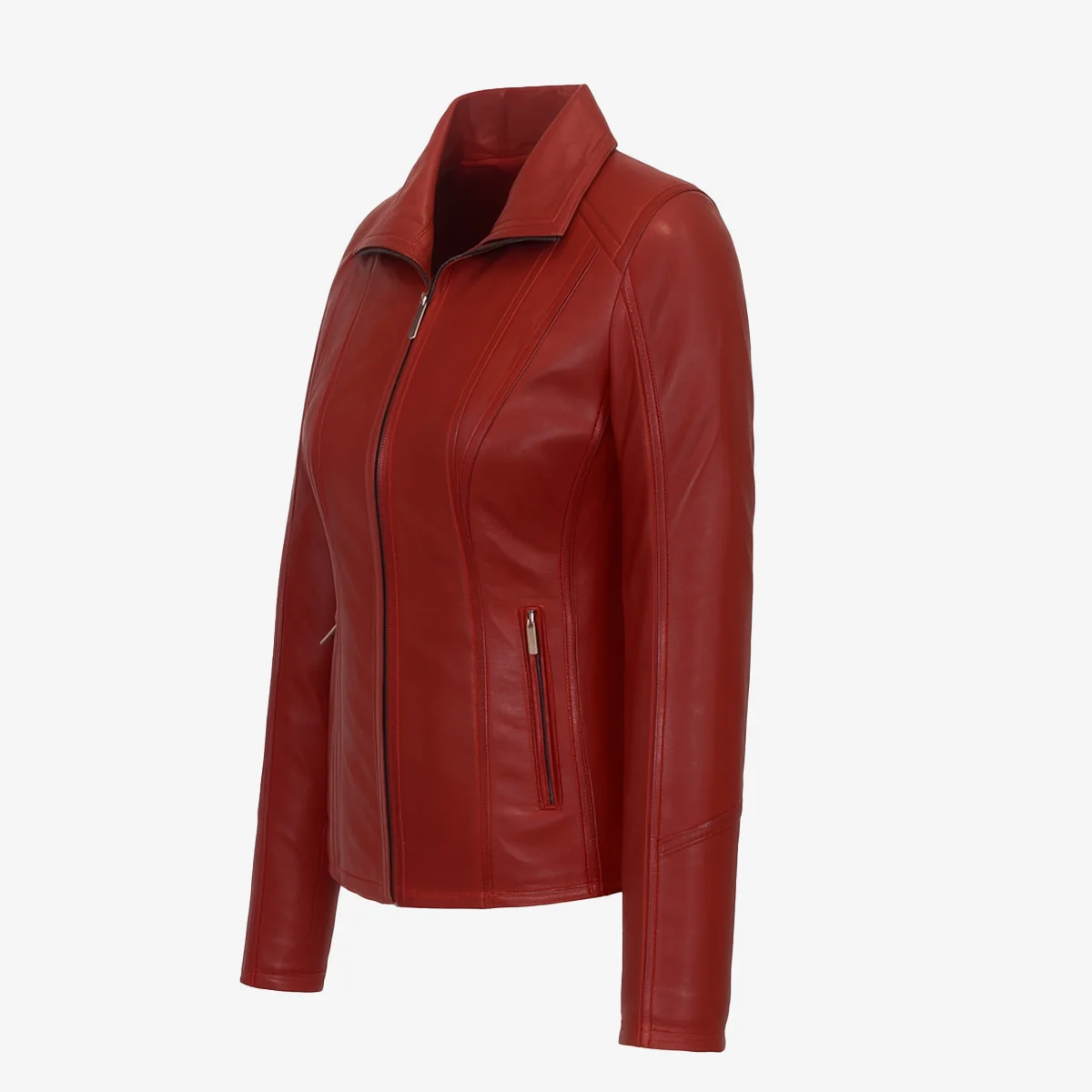 Redefine your style statement with our Women’s Leather Jacket red 9938 A, seamlessly designed to merge unwavering marvel with royal elegance. This leather jacket has been prepared from exorbitant lamb leather, it offers unique features, sustainability, and endurance. Its recurrent design transcends styles, making it a universal addition to your wardrobe for times to come.